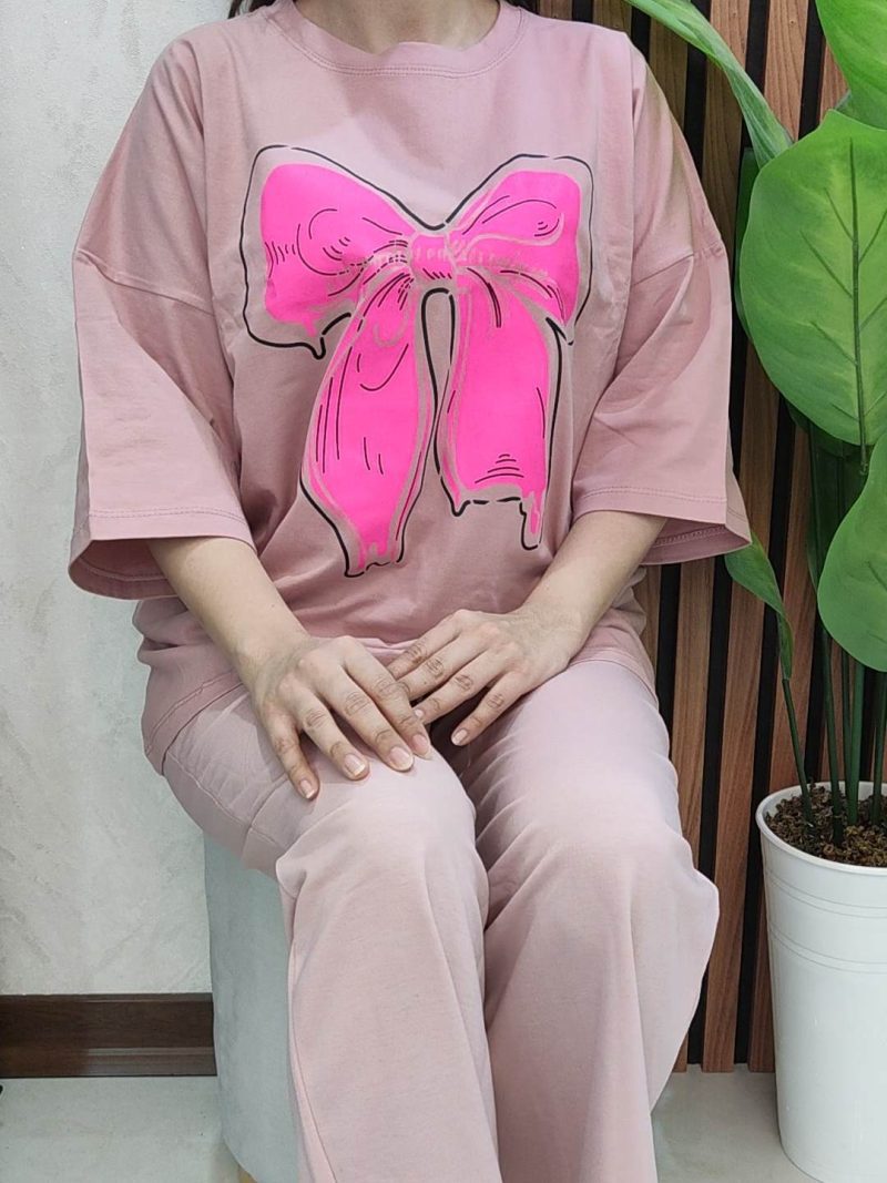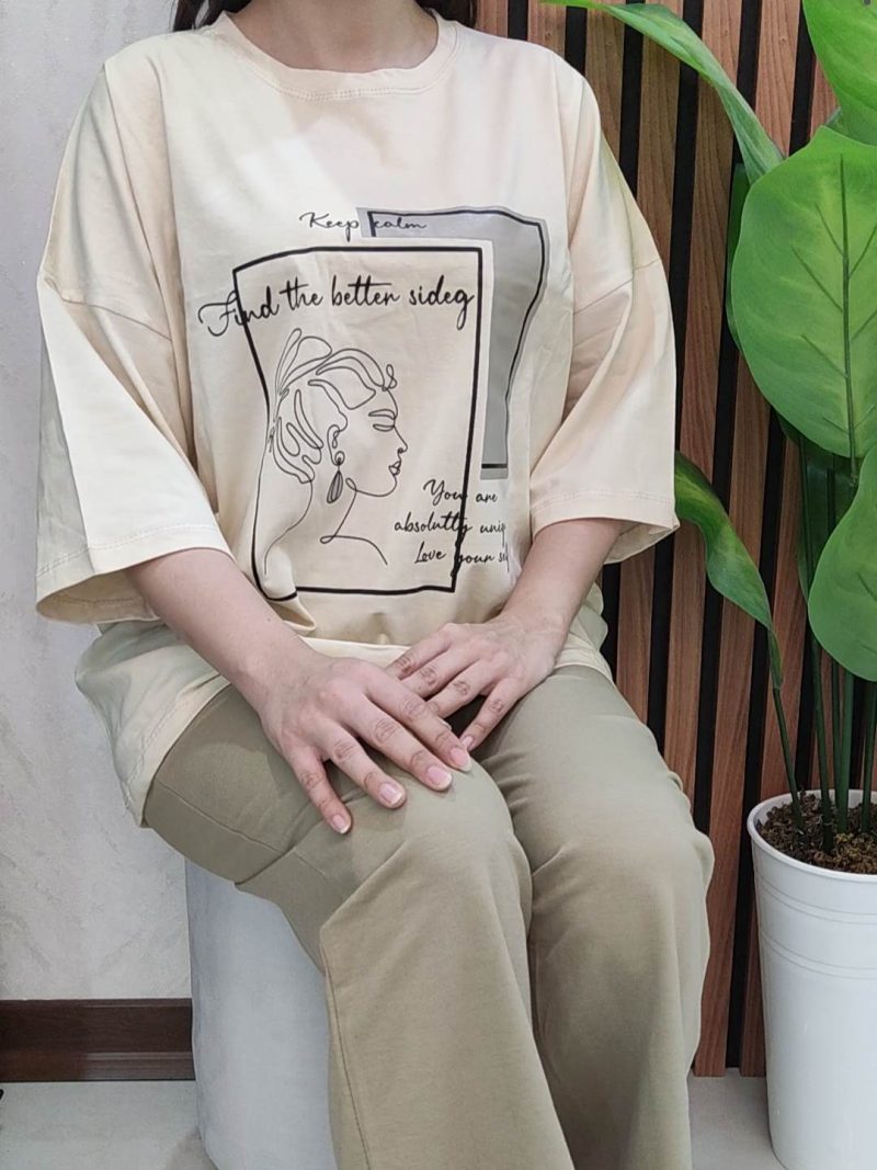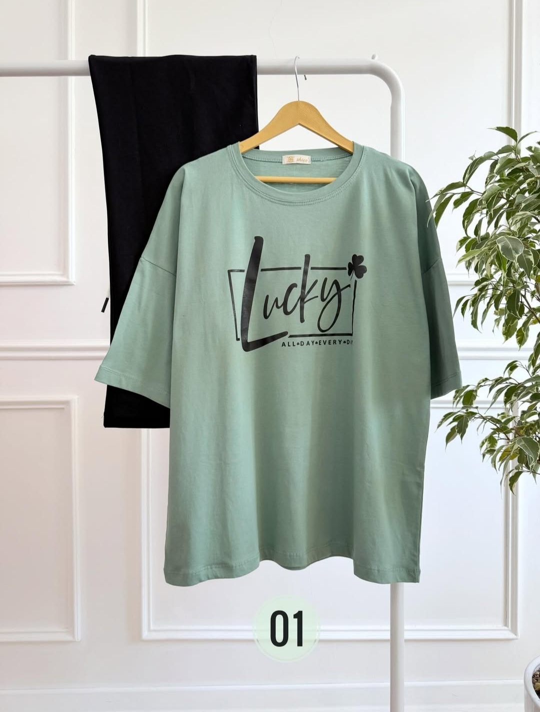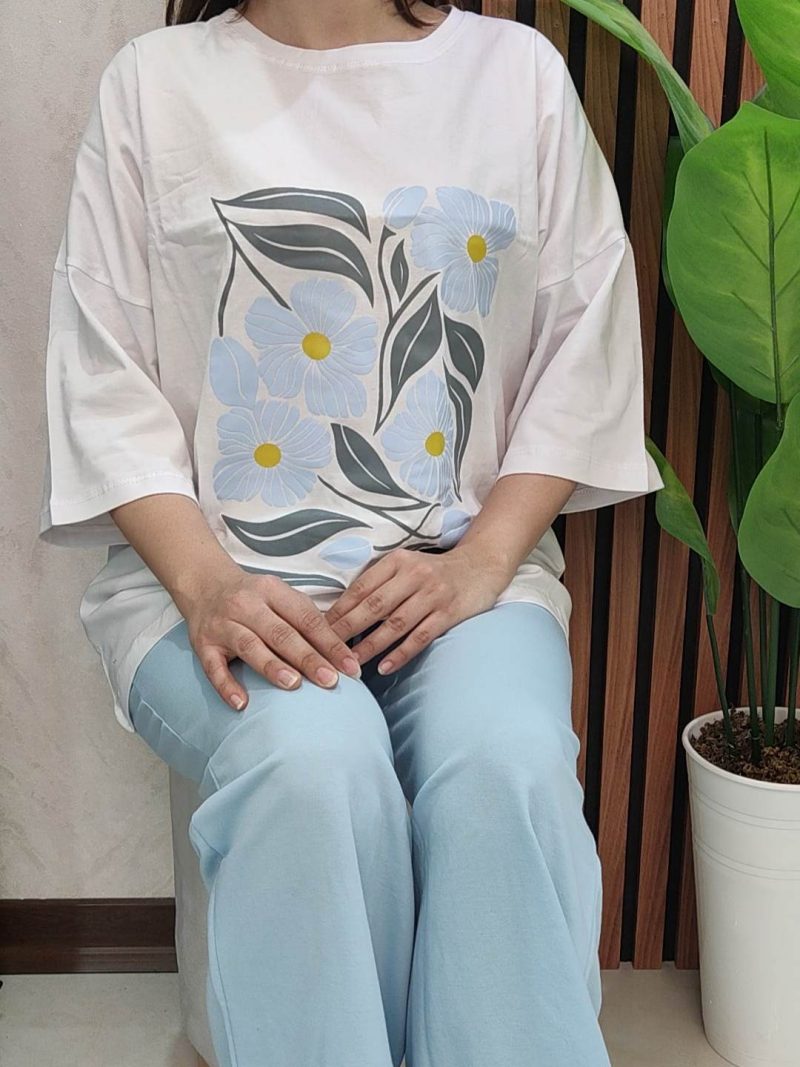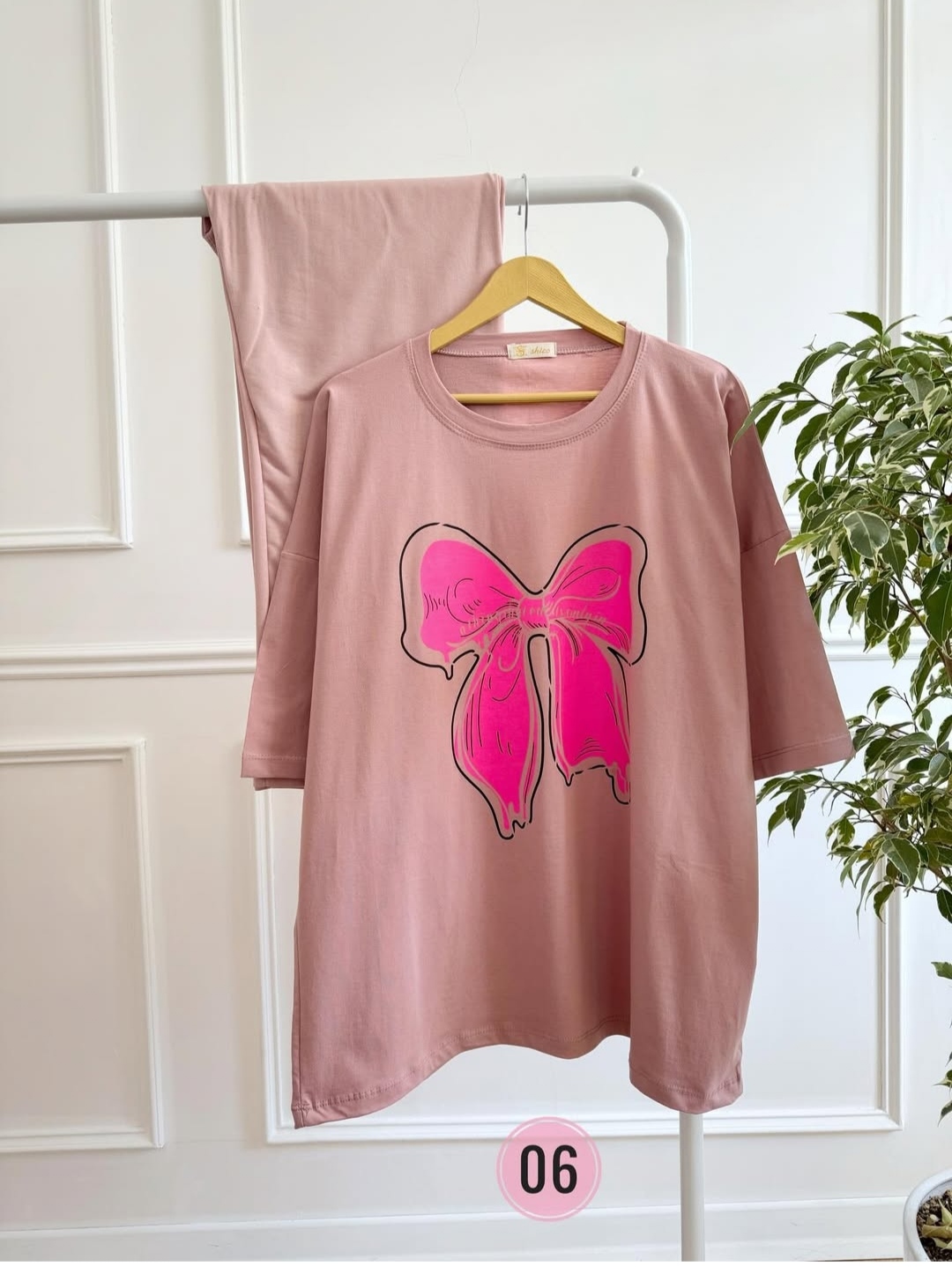 فری سایز 44 تا 50 جنس تیشرت نخ پنبه جنس شلوار پنبه گلکسی دور سینه 126/قد تیشرت 74/قد آستین از سرشانه 44 دور ران 64 و تا 74 کشسانی دارد/قد فاق 38 دور باسن 122 و تا 132 کشسانی دارد/قد شلوار 103