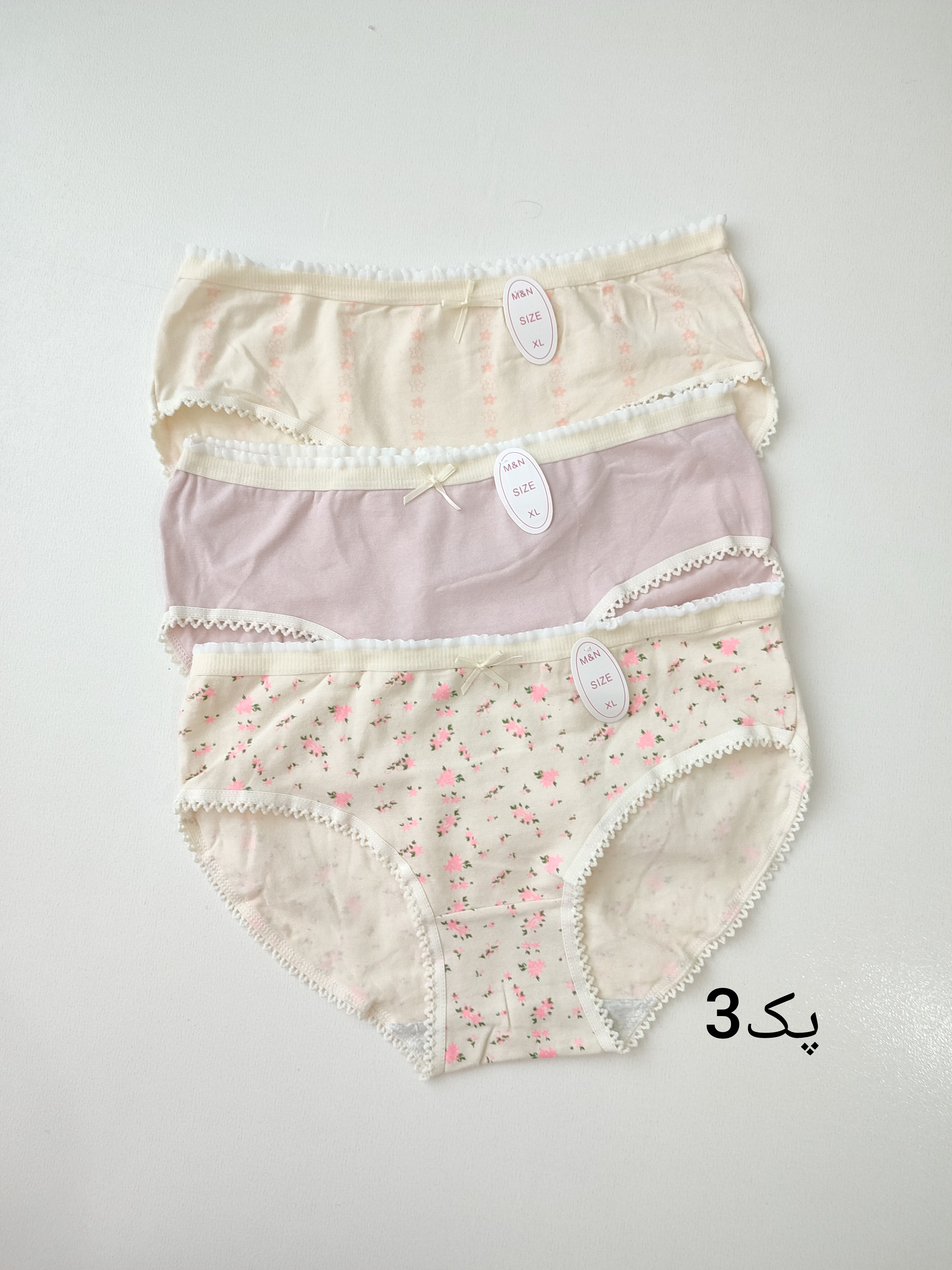 پک 3عددی شورت فانتزی وارداتی جنس نخ پنبه ضد حساسیت وارداتی اورجینال سایز مناسب38-42 پهنا32دورباسن64 قد فاق22