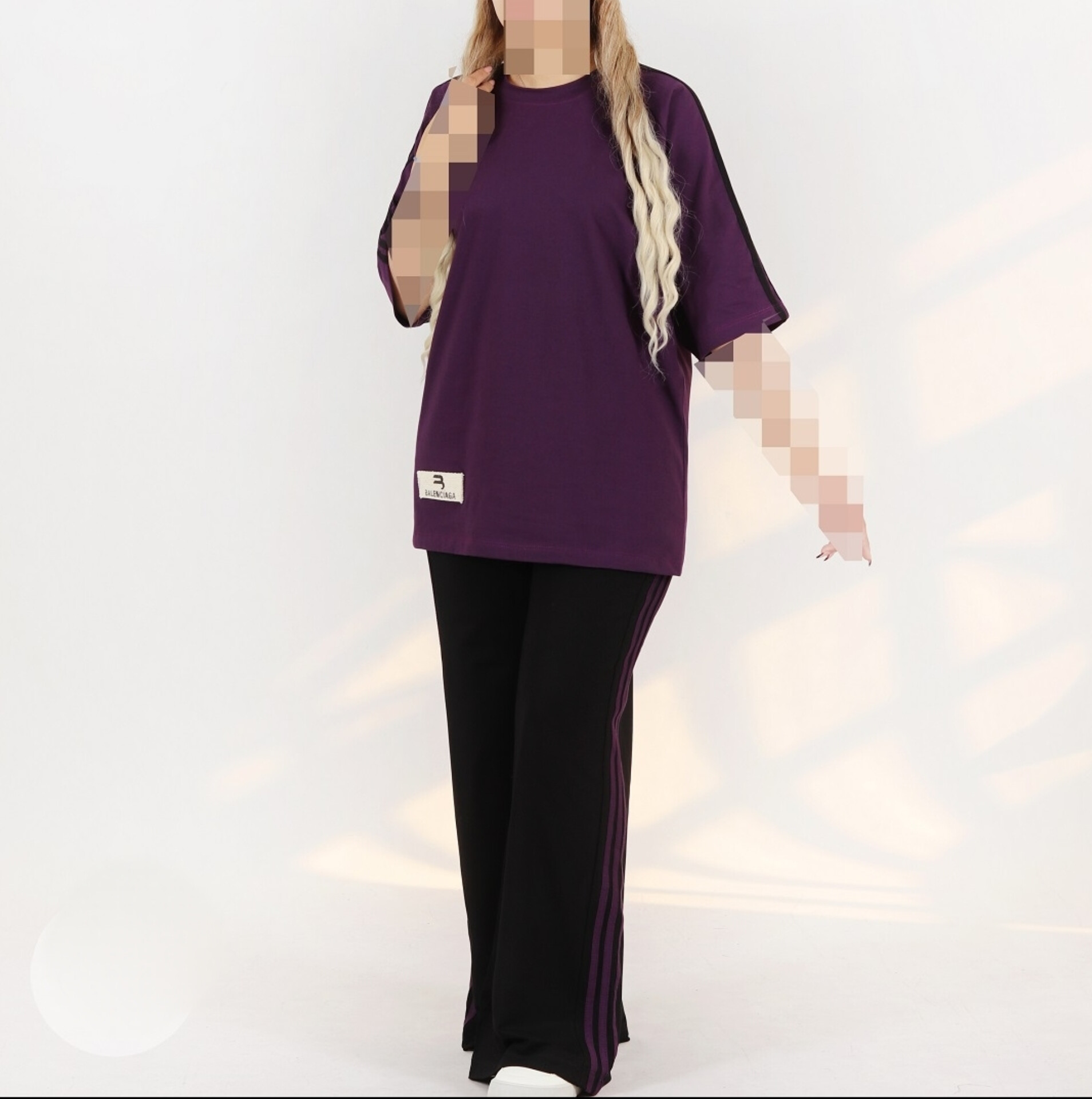 ست تیشرت لانگ وشلوار بگ پنبه گلکسی بالنسیاگا _ یک رنگ رندم تکرار سایزفری 38_46 گاها48 جنس تیشرت پنبه خالص نخ 28جنس شلوار پنبه گلکسی اعلا گرم بالا